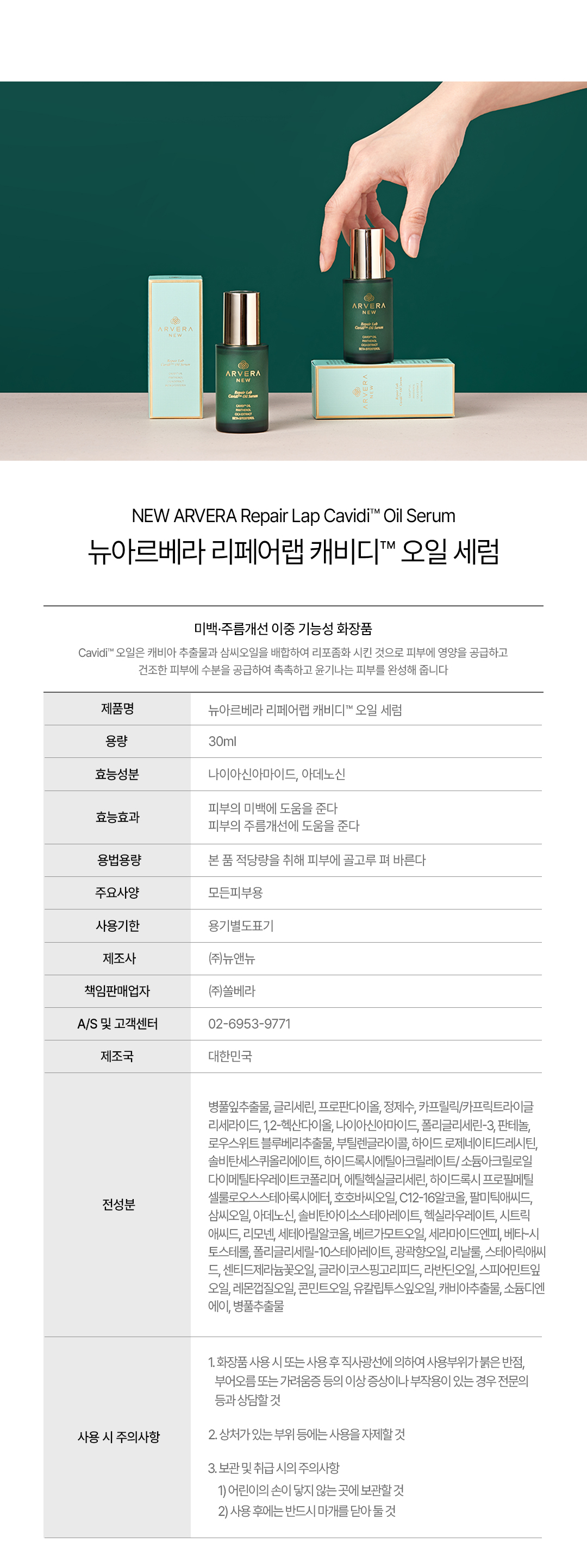 대마화장품! 캐비어 50,000PPM+대마오일(CBD) "뉴 아르베라 리페어랩 캐비디 오일 세럼" 30ml
