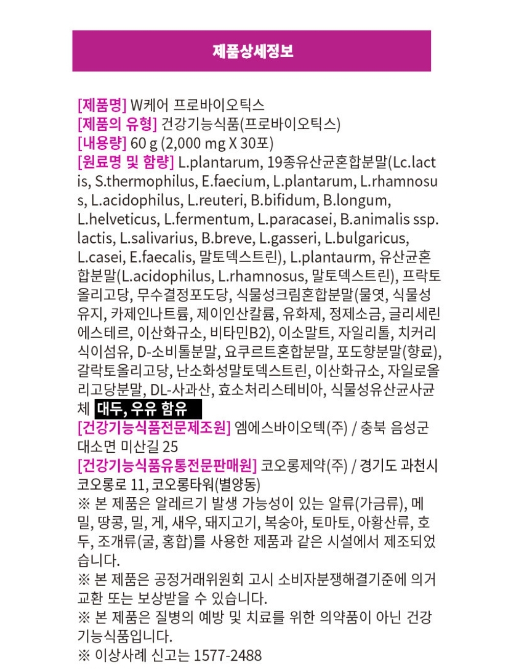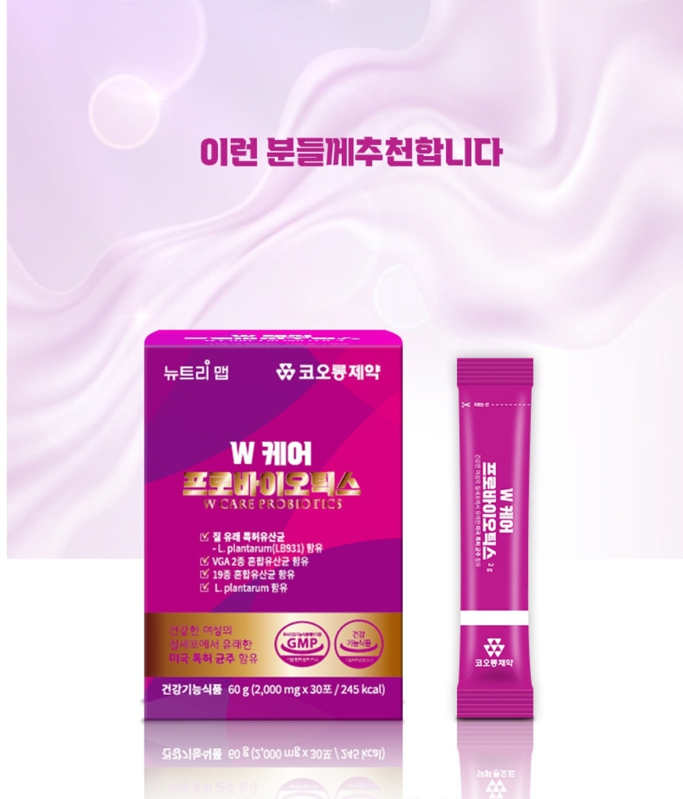 여성 질유래 특허유산균2종+혼합유산균 19종으로 빈틈없이 질건강을 케어하는 4세대 유산균 "W케어 프로바이오틱스" 30포X12BOX(12개월분) 720,000>>203,900