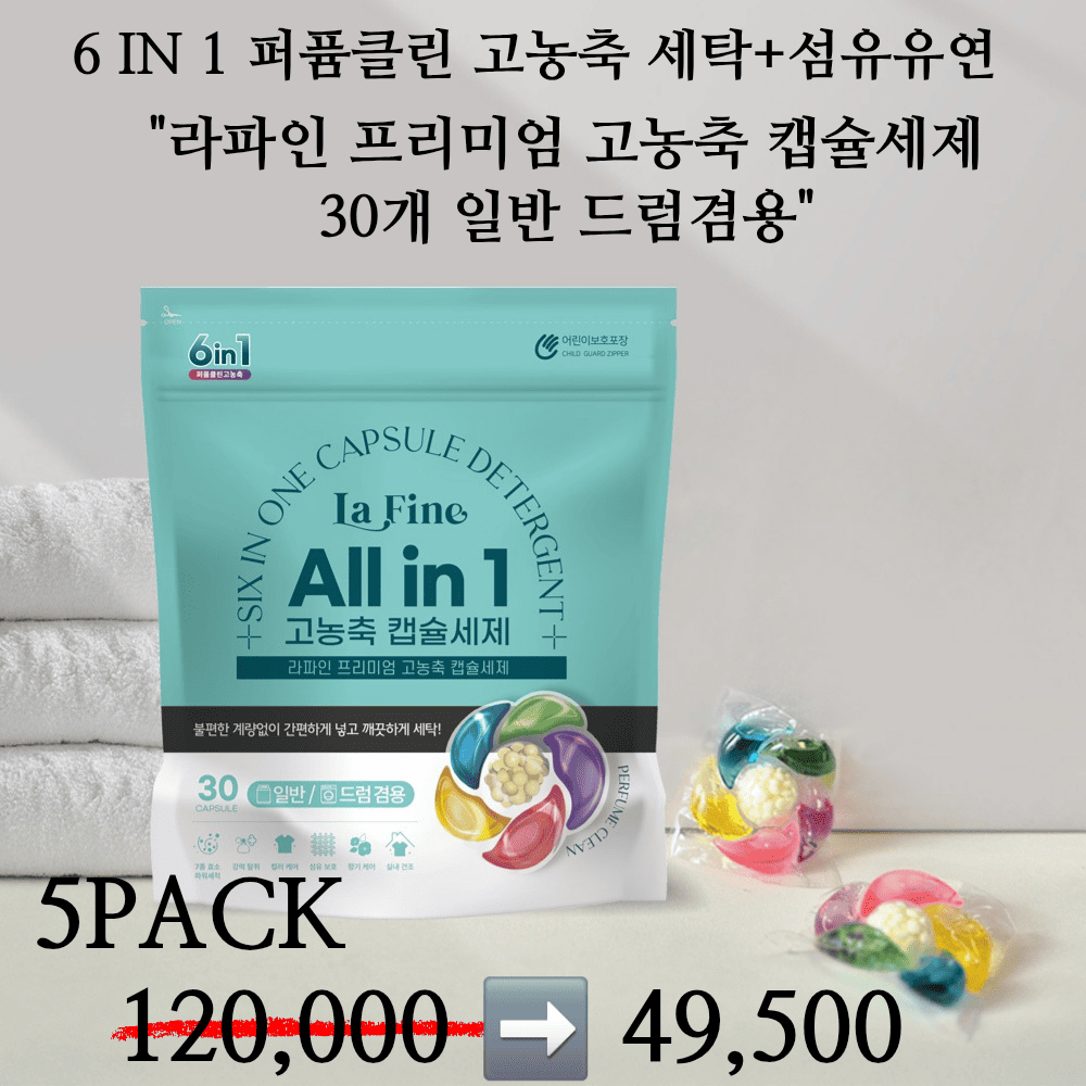 6in1 프리미엄 고농축 퍼퓸 일반 드럼겸용 "라파인 캡슐세제 30개입" 5pack 120,000>>49,500