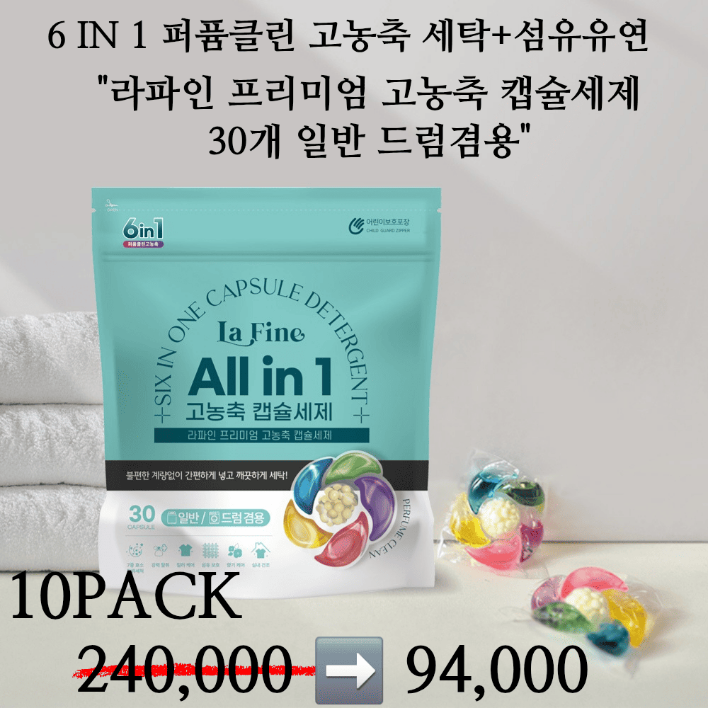 HOME >eloommall >living > 6in1 프리미엄 고농축 퍼퓸 일반 드럼겸용 "라파인 캡슐세제 30개입" 5pack 120,000>>49,500
