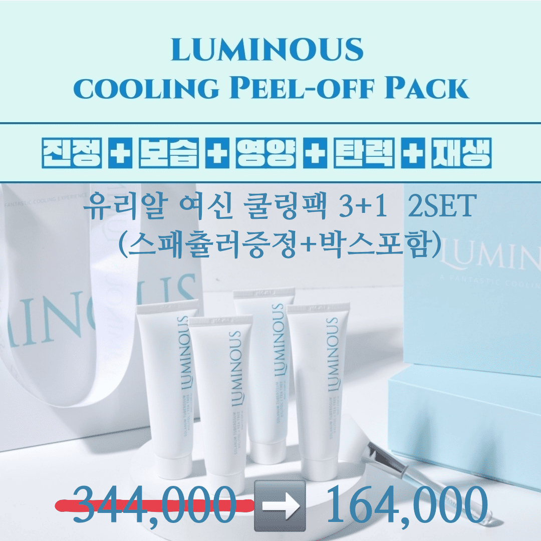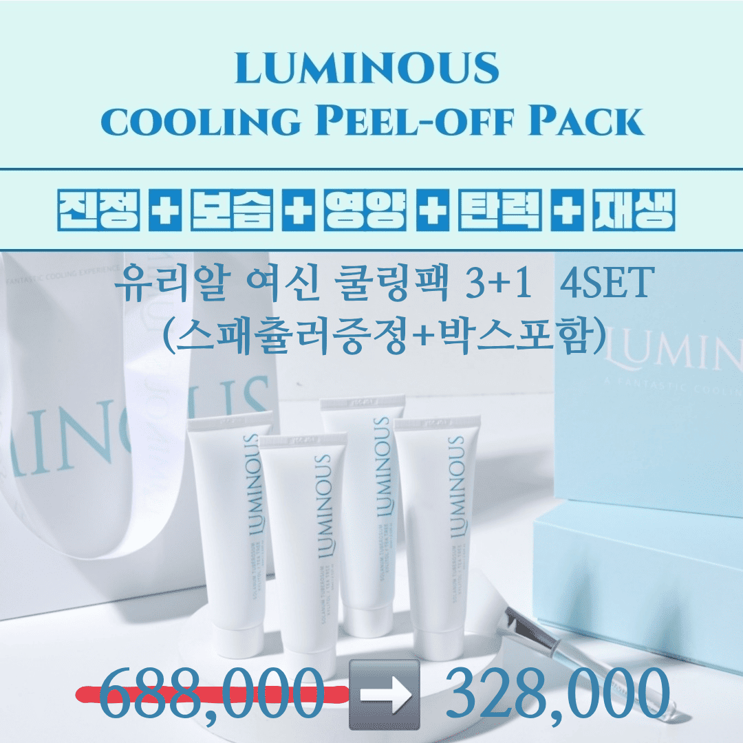 HOME >eloommall >beauty >etc > 홍조 모공 열노화 광노화 거침 손상 쳐짐 7가지 순기능이 완벽한 "루미너스 유리알 쿨링팩" 3+1 (스패츌라증정+박스포함) 1set 172,000>>87,000