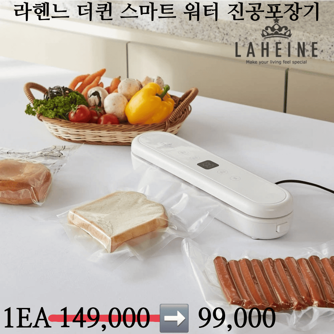 HOME >eloommall >living > 강력한 진공력 수분진공도 OK 자동모드+수동모드+밀봉모드 터치식 패널 "라헨느 더퀸 스마트워터 진공포장기" 149,000>>99,000