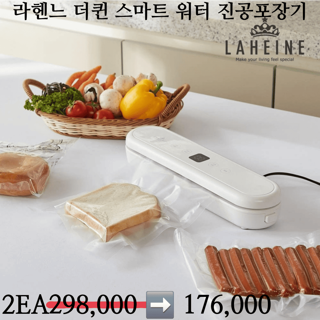 강력한 진공력 수분진공도 OK 자동모드+수동모드+밀봉모드 터치식 패널 "라헨느 더퀸 스마트워터 진공포장기" 149,000>>99,000
