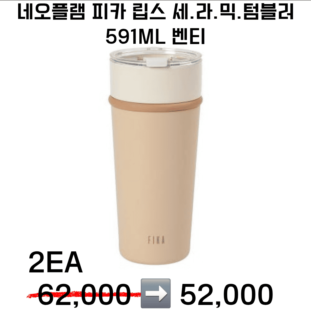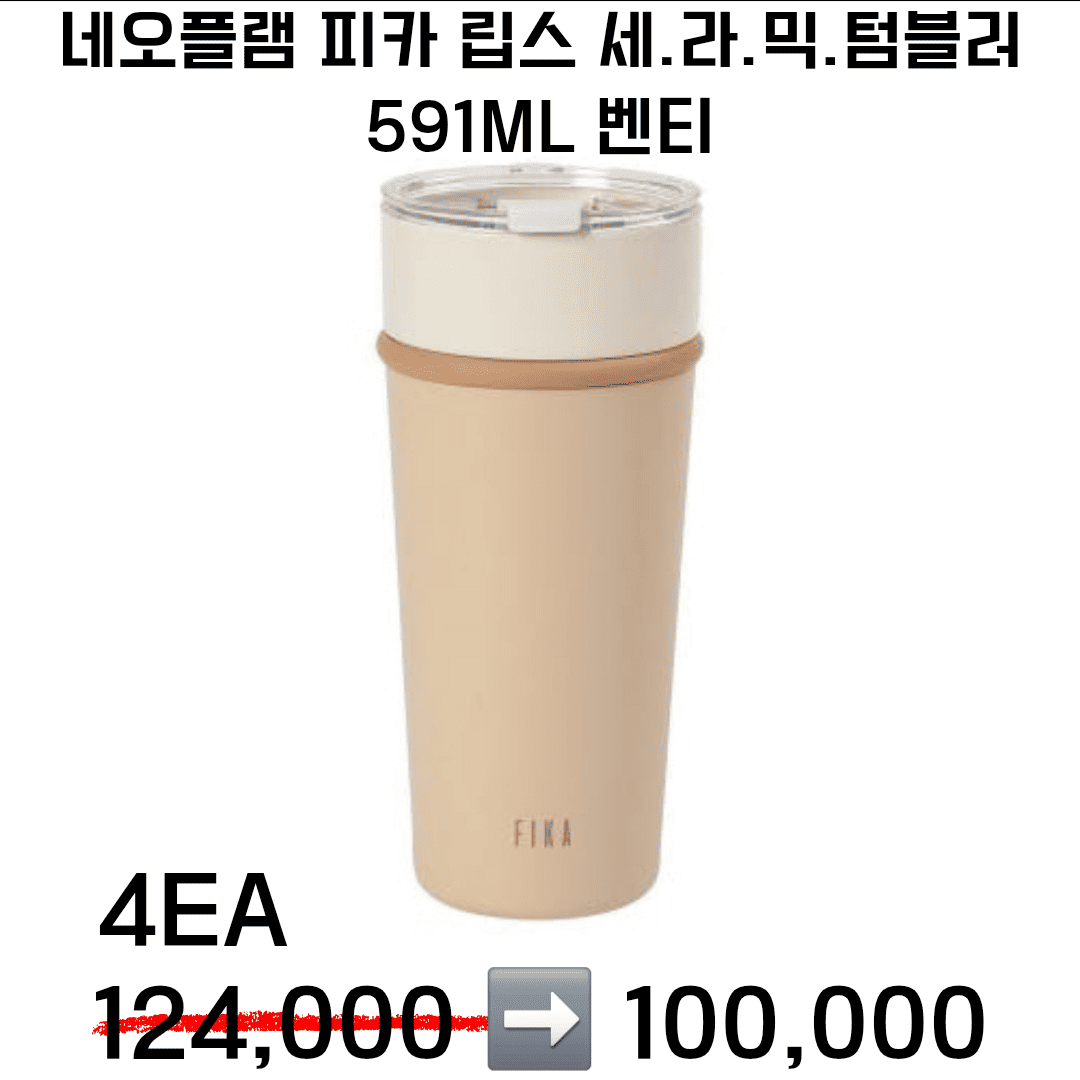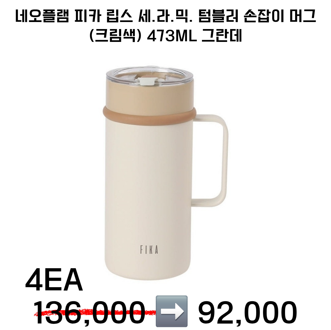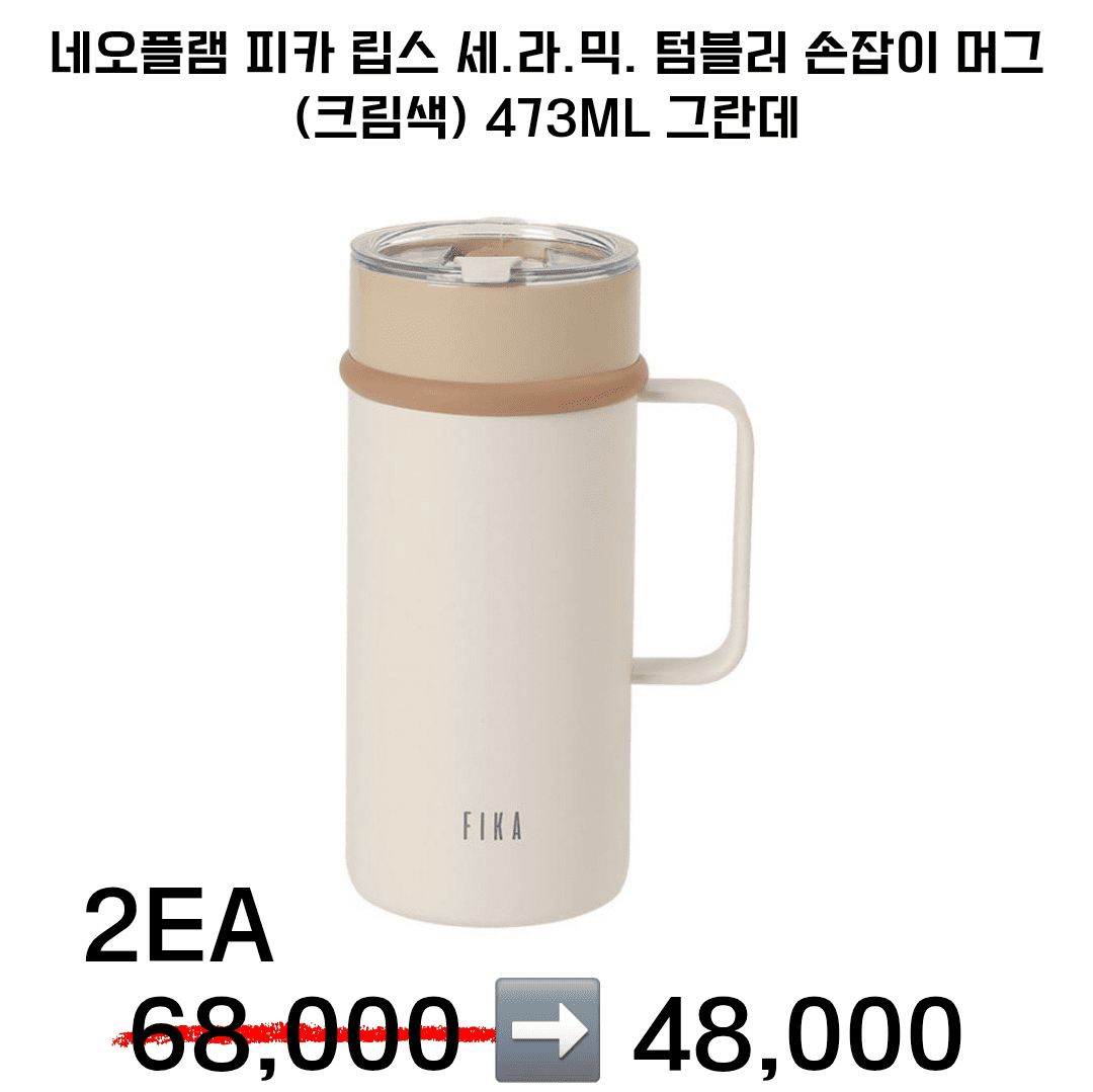 네오플램 피카 립스 세.라.믹. 텀블러 손잡이 머그 (크림색) 473ml (그란데)2ea 48,000