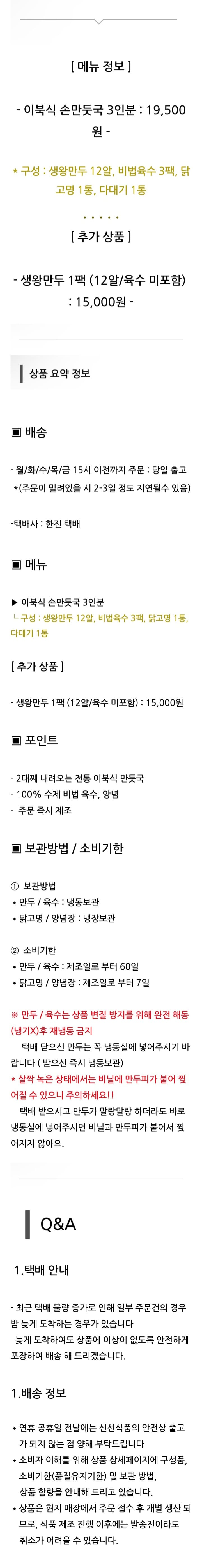 HOME >eloommall >living > 부산 명물 2대 전통 이북식 만두국 100% 수제만두 한돈 생왕만두 12알, 비법육수 3팩, 닭고명1통, 다대기 양념장 1통 (냉동X 생만두O) 3인분 3set 58,500>>52,500