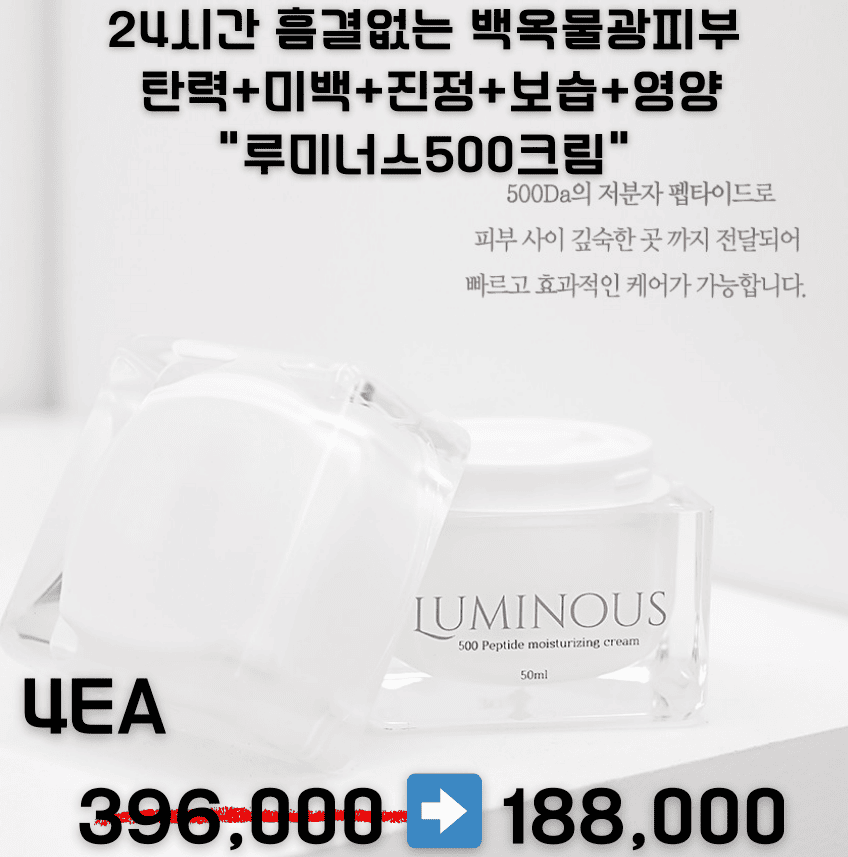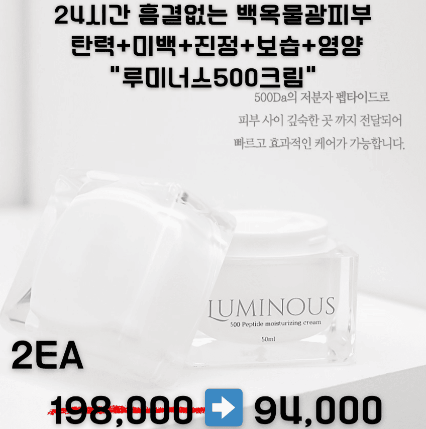 24시간 흠결없는 백옥물광피부 탄력+미백+진정+보습+영양 "루미너스500크림" 2ea 198,000>>94,000