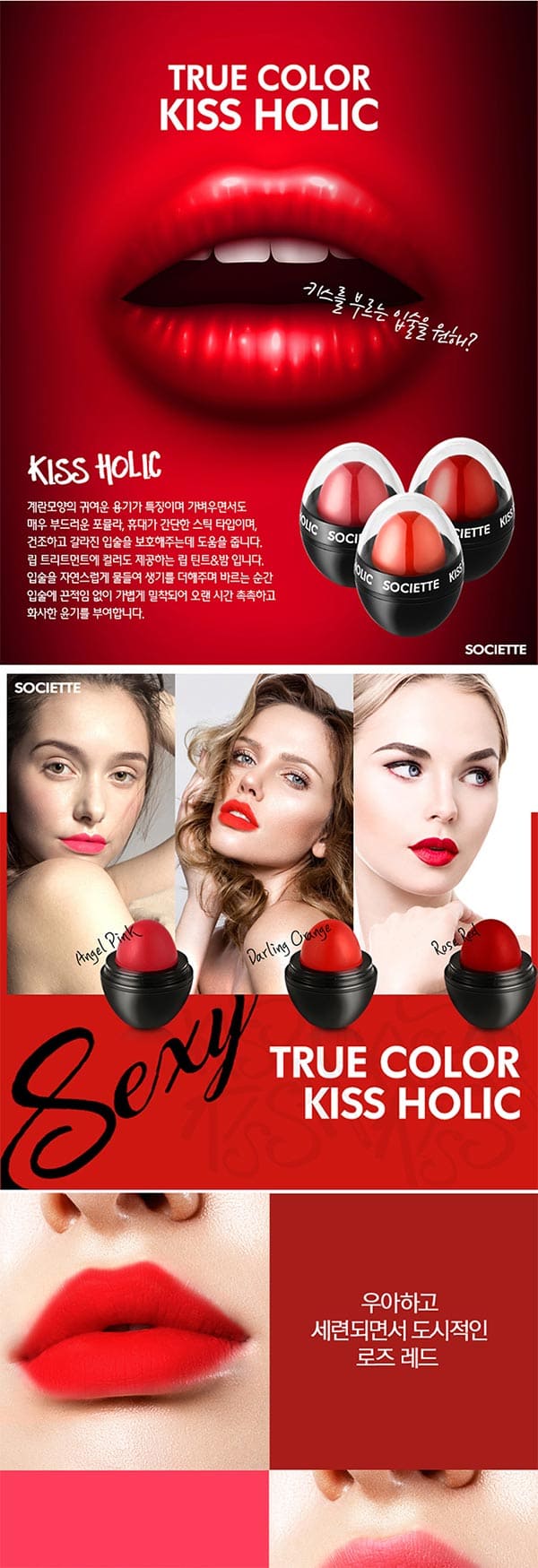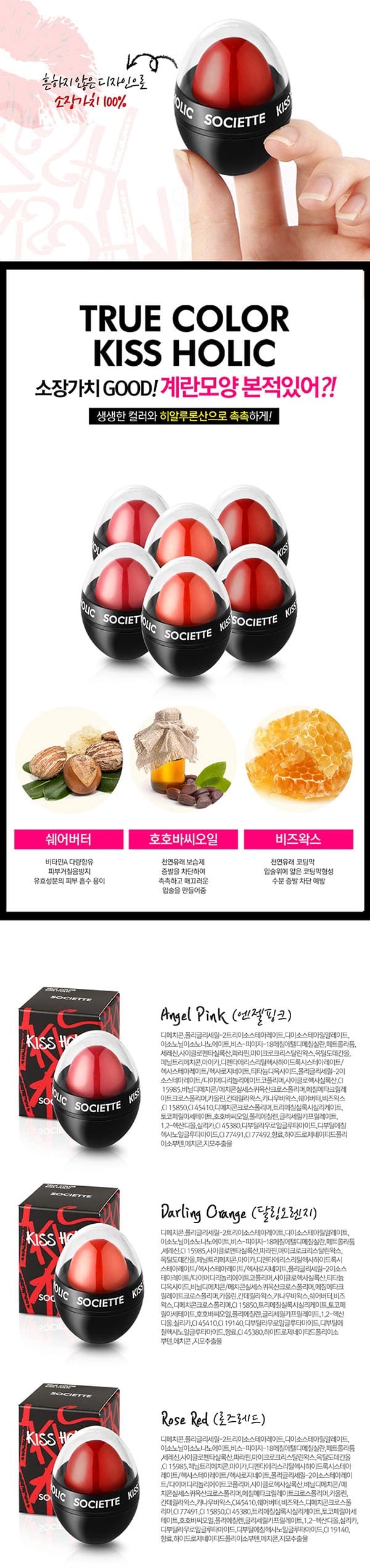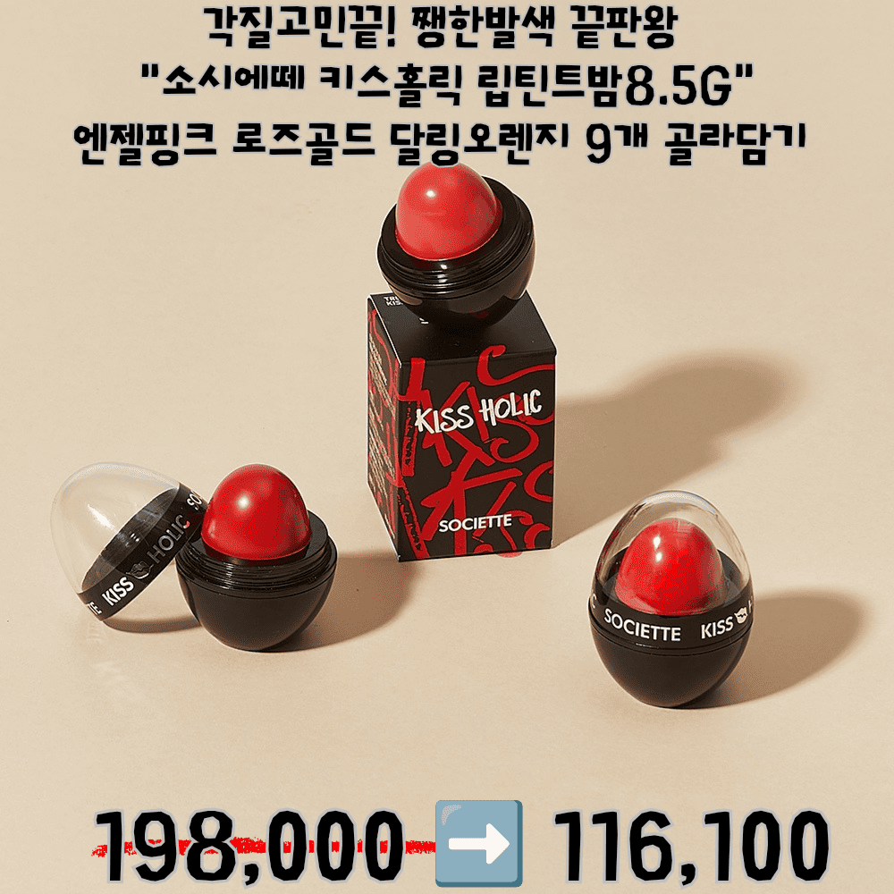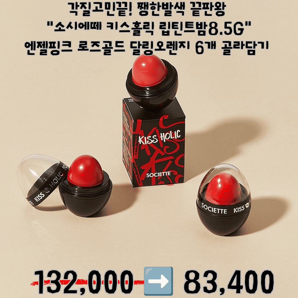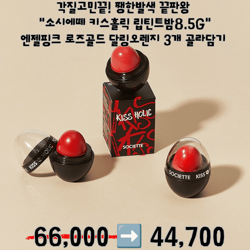 HOME >eloommall >beauty >etc > 각질고민끝! 쨍한발색 끝판왕 "소시에떼 키스홀릭 립틴트밤 8.5g" 엔젤핑크, 로즈골드, 달링오렌지 3개 골라담기 66,000>>44,700