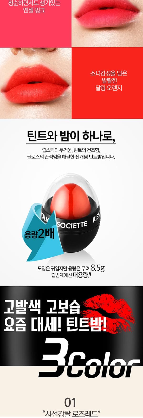 각질고민끝! 쨍한발색 끝판왕 "소시에떼 키스홀릭 립틴트밤 8.5g" 엔젤핑크, 로즈골드, 달링오렌지 3개 골라담기 66,000>>44,700