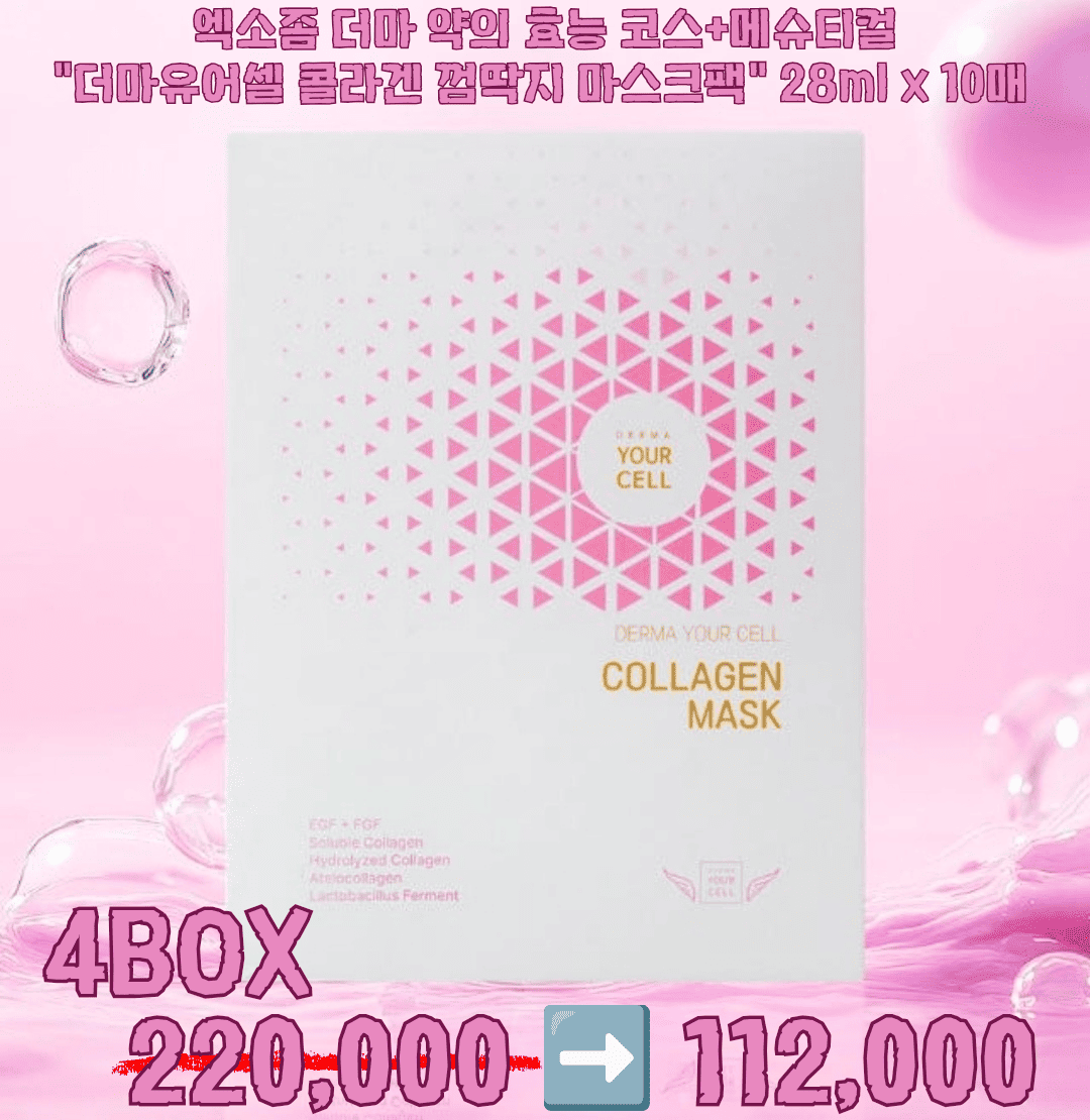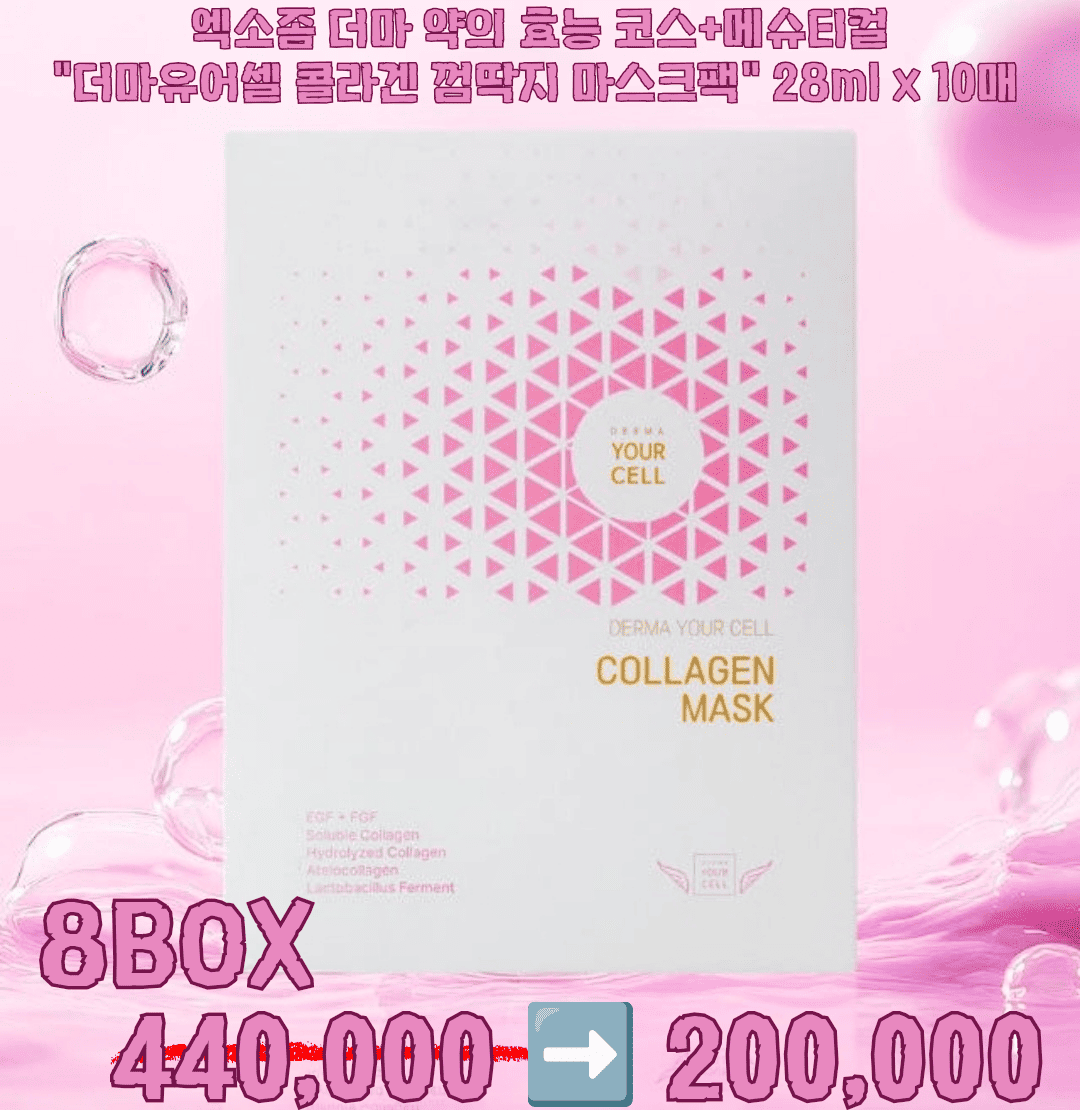 엑소좀 더마 약의 효능 코스메슈티컬 "더마 유어셀 콜라겐 껌딱지 마스크" 28mlX10매 2box 110,000>>60,000