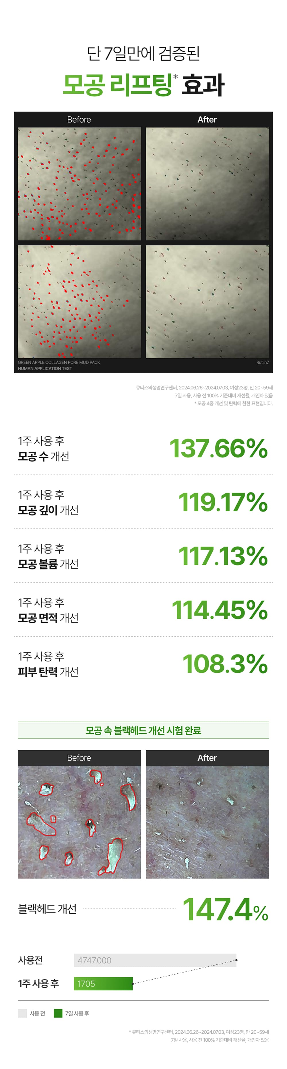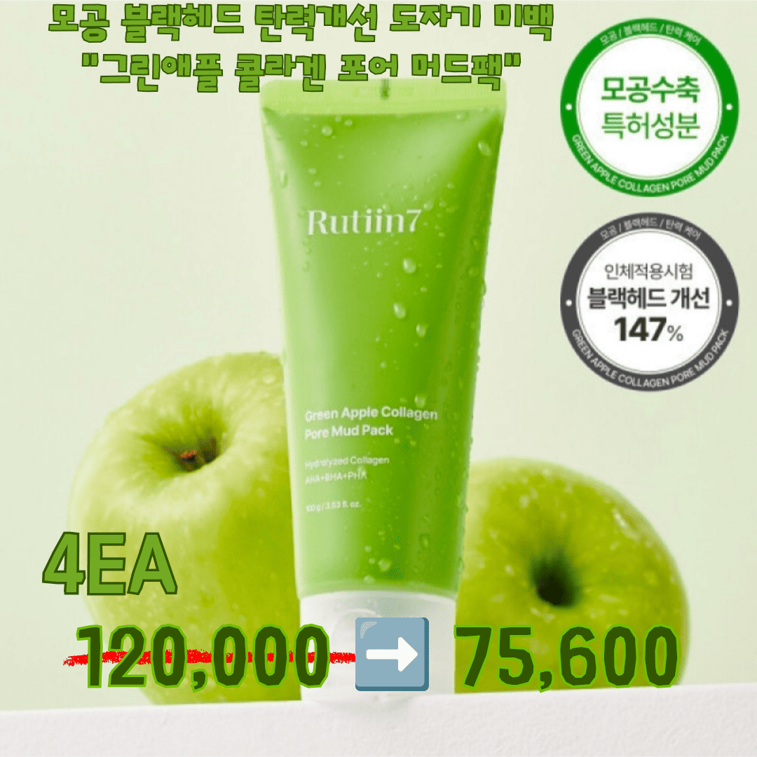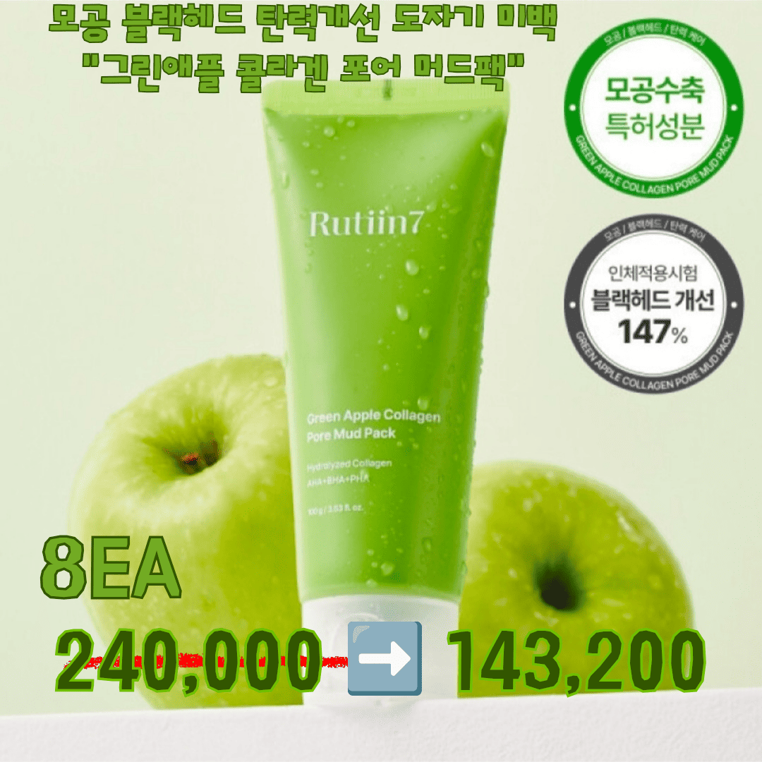 모공 블랙헤드 리프팅 탄력개선 도자기 미백 "그린애플 콜라겐 포어 머드팩" 2ea 60,000>>39,800