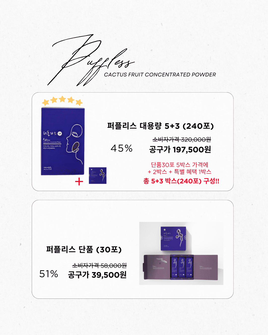 HOME >eloommall >health > 실컷먹고 살안찌게 붓기삭제 "퍼플리스" 30포 58,000>>39,500