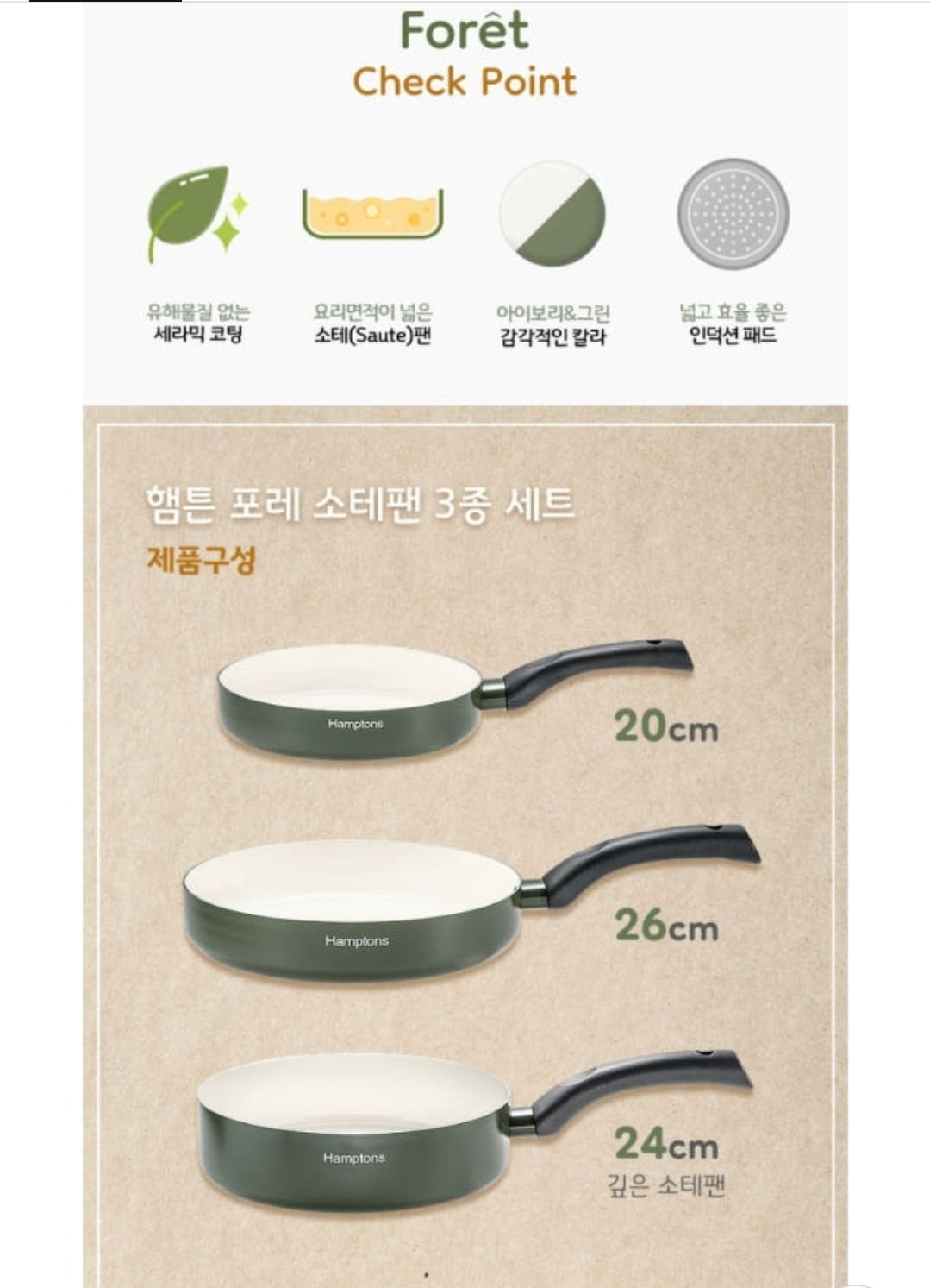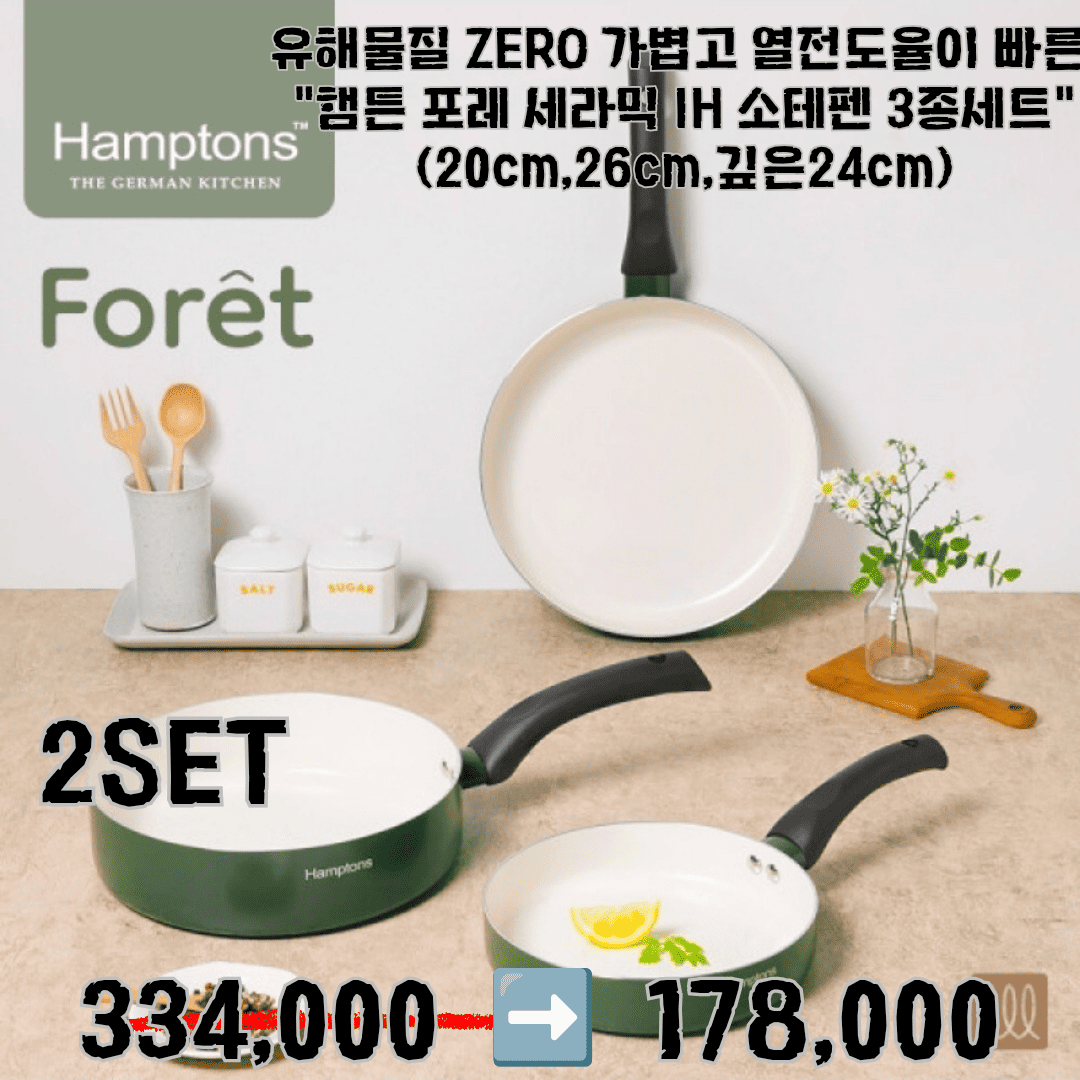 HOME >eloommall >living > 유해물질 ZERO, 가볍고 열전도율이 빠른 "햄튼 포레 세라믹 IH 소테펜 3종세트" 167,000>>99,000